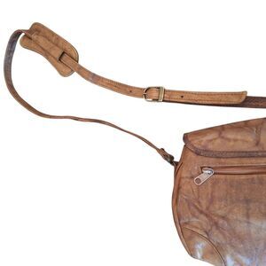 Brown leather crossbody bag by Wilsons, distressed rustic look