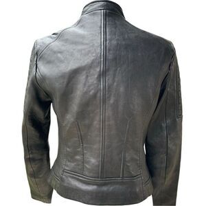 Wilsons Genuine Leather Motor Jacket Black Full Zip Quilted Shoulder Size XS VTG