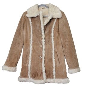 Wilsons Genuine Leather Suede Sherpa Long Jacket Coat Light Brown Tan Vintage 70s, Penny lane.