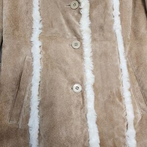 Wilsons Genuine Leather Suede Sherpa Long Jacket Coat Light Brown Tan Vintage 70