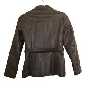 Wilsons L Leather Maxima Belted Jacket Black Dress Coat Pockets Vintage