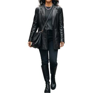 #WilsonsLeather #LeatherJacket #BlackLeatherCoat #LeatherBlazer #VintageLeather #ChicStyle #ClassicStyle #MotoJacket #ThreeButton #Outerwear #90sFashion #Y2KStyle #VintageLeather