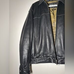Wilsons Leather Black Bomber Jacket with Tan Lining