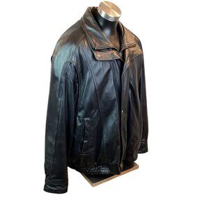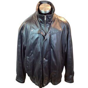 Wilsons Leather Black Leather Mens 2X Moto Jacket With Zip Out Thinsulate Insulation Wool Liner Vest