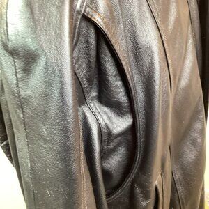 Condition: Excellent Pre-Owned. This coat is shiny, buttery-soft, and has the “squeak” of new leather. The zip-out wool blend liner vest is particularly warm and can be removed. This is one beautiful coat with only one minor blemish. The last photo shoes a half inch scratch that is barely noticeable.
