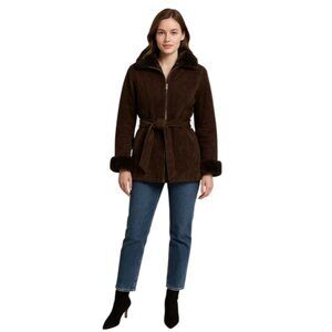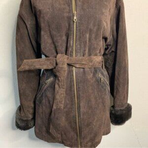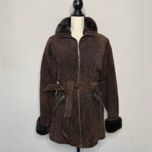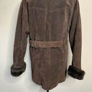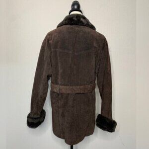 Wilsons Leather Luxurious Brown Faux Fur Collar, Cuffs Suede Leather Coat