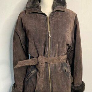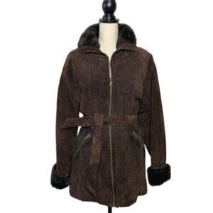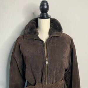 Wilsons Leather Brown Faux Fur Collar Cuffs Suede Leather Coat