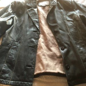 Chocolate color, leather jacket with two side pockets outside and two inner pockets, 100 % Leather and lining is 100% Polyester