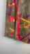 Soft leather shell in a distressed, weathered light brown. Splatters of paint in bright red, orange and fuchsia/purple