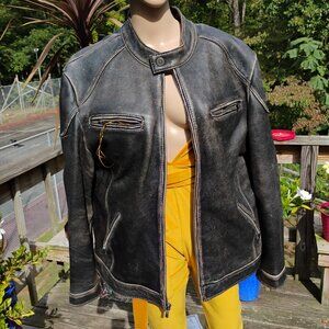Wilson’s Leather Distressed Moto Jacket – 100% Genuine Leather – Men’s XL / Unis