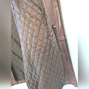 This Wilsons Leather Heavy Winter Coat in size Medium features a rich brown color and a soft, fully broken-in feel, crafted from 100% leather. It is both heavy and warm, showcasing a stunning distressed finish. While there are no holes or tears, some signs of wear are visible as shown in the images. The coat includes an elastic pull to enhance the waistline, and the lining remains intact. With approximate measurements of 23 inches from armpit to armpit and a length of 34 inches, it’s a stylish and functional addition to your winter wardrobe.