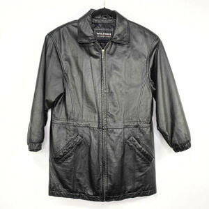 Wilsons Leather Jacket Women's Medium Black Zip Up Mid Length Lined