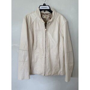 Wilsons Leather Jacket Womens XXL Cream Cottage Chic Soft Collar Blazer Zip Up