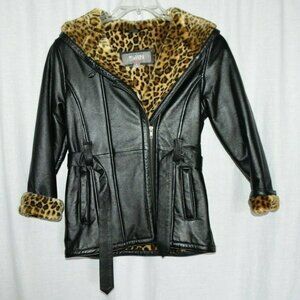 Wilsons Leather Kids Girls Large L Black Leather Hooded Jacket Faux Fur Lined