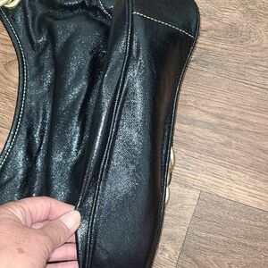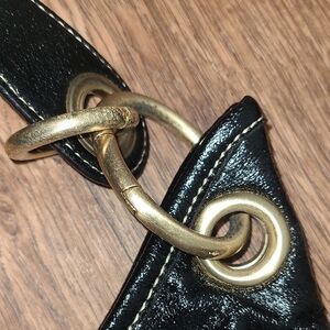 Chic hobo bag with leopard print and black leather. Features gold-tone accents. Ideal for a bold look