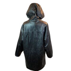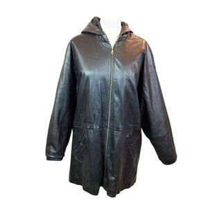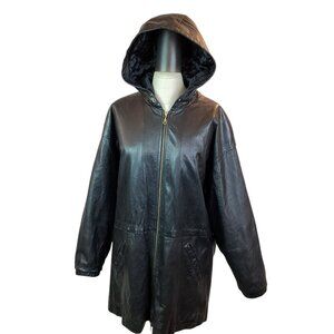 Wilson's Leather Long Hooded Leather Jacket Black Vintage Womens Medium