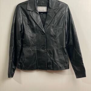 Wilson’s Leather Maxima M leather jacket patchwork tan stitching button collar blazer