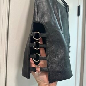 Wilsons Leather Maxima Black Genuine Leather Mini Skirt Size 6 with Rings