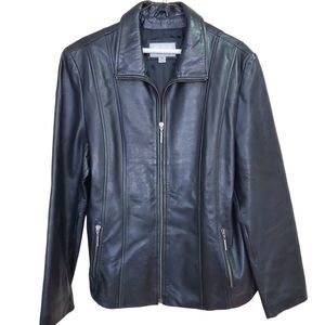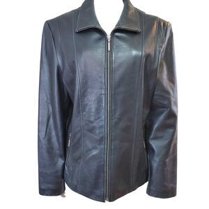 Wilsons Leather Maxima Black Leather Jacket Womens Size XL Zip Up Collared