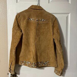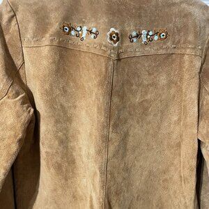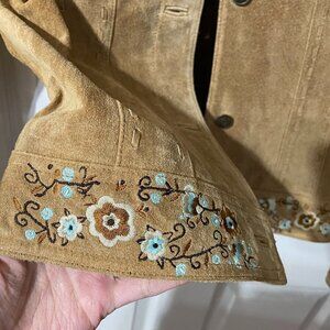 Really Cute Leather Jacket w/ Sewn Flower Detailing on Body Hem, Sleeve Hem, & Back