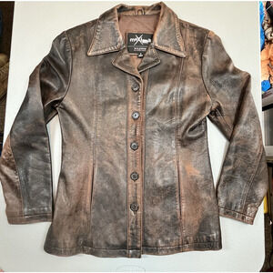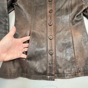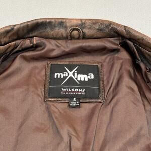 Wilsons Leather Maxima Jacket Womens Small Chocolate Brown Buttonup Lining FLAWS