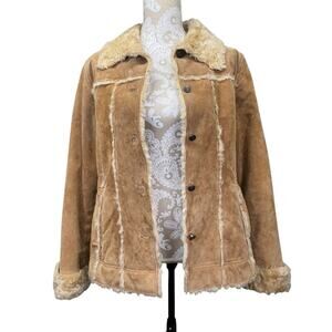 Wilson's Leather Maxima Tan Leather Fur Lined Penny Lane Coat Large 70s Retro
