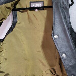 Wilsons Leather Men's M Medium Black Leather Biker Motorcycle Vest Snap Closure
