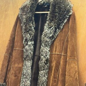 Wilsons Leather Pelle Studio Suede Faux Fur Brown Coat