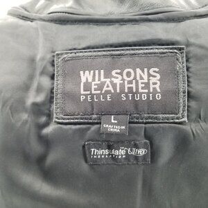 Wilsons Leather Pelle Studio Women Black Leather Insulated Jacket Coat Zip Large