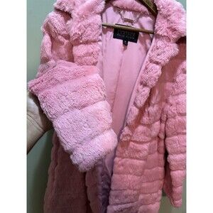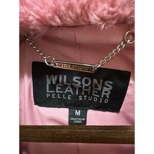 Wilsons Leather Pelle Studio Women’s Barbiecore Pink Rabbit Fur Trench Coat Sz M