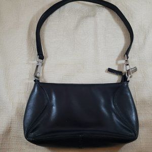 Wilson's Leather Pelle Studios Black Minimalist Small Shoulder Handbag/Purse with Silver Tone Accents