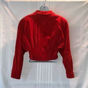 Vintage Wilson’s Leather Jacket and Skirt. Chic red pencil skirt set by Wilsons Leather. Perfect for stylish occasions. Jacket Sz Med with Button Chain Closure Padded Shoulders Skirt Sz 4 Laying Flat 12” across waist. Hip/Bottom 17” Laying Flat. Length 20” Vintage Sizes