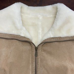 Wilsons Leather Tan Suede Jacket Coat Faux Fur Lined Belted Tie Zip XL Collar