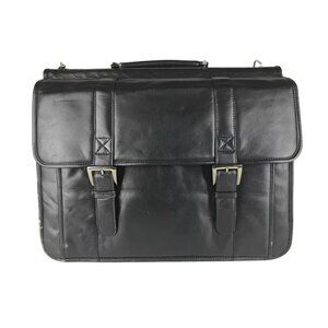 Wilsons Leather Unisex Black Leather Top Handle Briefcase Document Case Bag