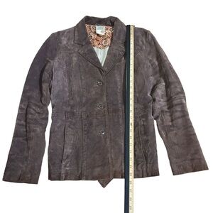 Elevate your style with this stunning Wilsons leather jacket. Crafted from 100% genuine leather, this mid-length jacket features a button-up design with accents that add a touch of class to any outfit. If you are looking to have that hour glass look the belt will surely impress. The brown color and classic theme make it perfect for any occasion, whether it's a party, casual outing, or formal event.