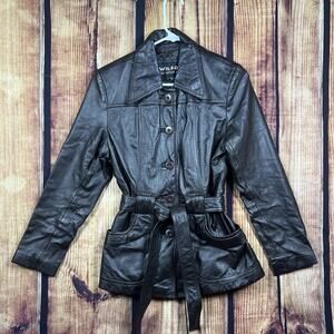 Wilsons Leather Women's S Brown Genuine Leather Belted Trench Coat Y2K Mid Length