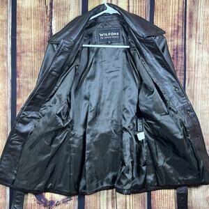 Wilsons Leather Womens S Brown Genuine Leather Belted Trench Coat Y2K Mid Length