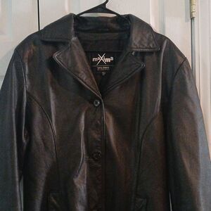 Wilsons Leather Maxima black 100% leather button jacket coat