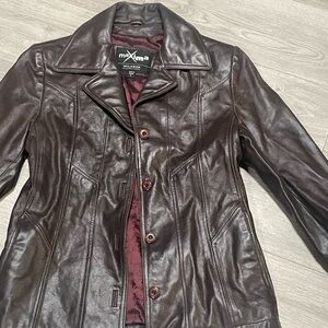 Leather Wilson’s brown leather jacket by Maxima. Features a sleek design with button closure. Great condition!