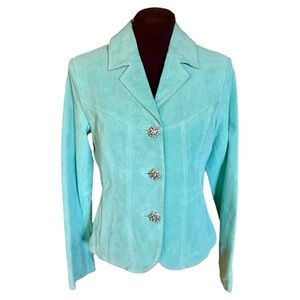 Wilsons Maxima Suede Teal Lined Jacket with beautiful Rhinestone Buttons