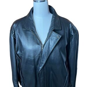 Wilsons Men Black Leather Bomber Biker Jacket Insulated Zip Out lining Size 48