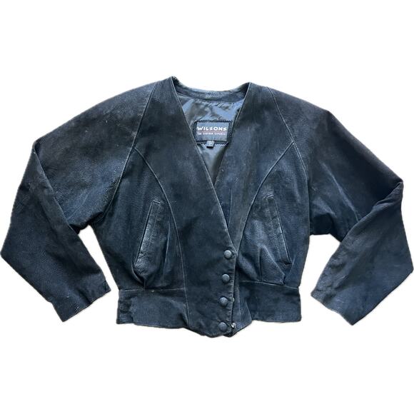 Wilson’s Suede Leather Black Bolero Style Jacket Snap Front Small Motorcycle