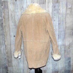 Wilsons Tan Leather Suede/Faux Fur Trim Coat Womens Size Large NWT