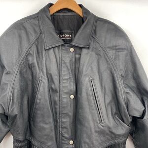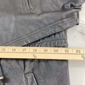 Wilsons The Leather Experts Motorcyle Coat Jacket Womens Size XL Black Full Zip. Leather Anorak Jacket. Zip up with Snap Closure. Drawstring waist.. Four pockets on front. Cinch Waist. Black Leather Coat.