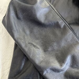 Embossed crocodile sides. Removable faux shearling vest. Good vintage condition, minimal marks. Very tiny white dots on right sleeve, see photos. Zipper can be tricky, treat with care.