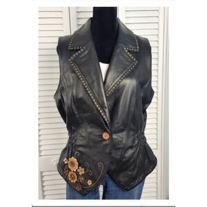 Wilsons Women's Leather & Suede Vest Whimisgoth Black Studded Biker size Large