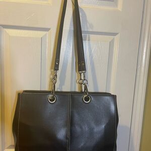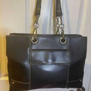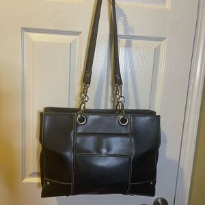 Wilsons Leather Black Briefcase Satchel Silver tone Hardwares