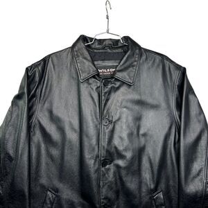 Wilsons Leather Jacket Men's Size XL Black Button Front Vintage Leather Coat
