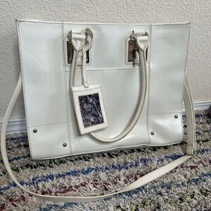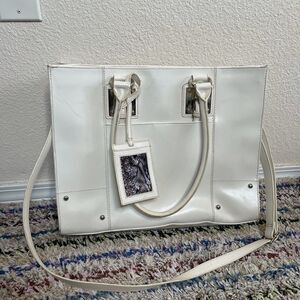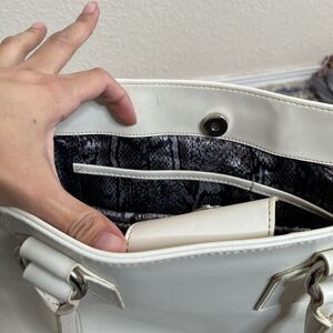 Has the place for a laptop with the padded sleeve. Inside is super clean. Please see pictures for marks and scuffs on the outside.