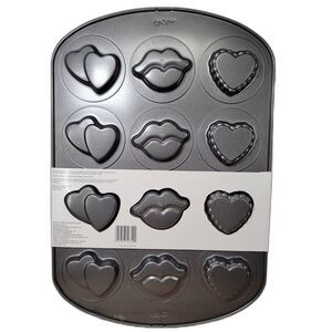 Wilton 12-Cavity Non-Stick Valentine Cookie Pan NWT. Comes from a smoke free home.